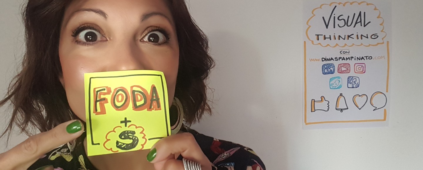 Hoy, lo uso mucho en Mentorías y Coaching Visual, ya que a la medida que vamos conversando con el cliente, yo le voy agregando dibujos de Visual Thinking que le hagan sentido y aporten un elemento visual que siempre es más poderoso que solo las palabras. Este FODA + S, lo encaro diferente, de una manera nueva y circular, con un final novedoso e innovador que es la S.