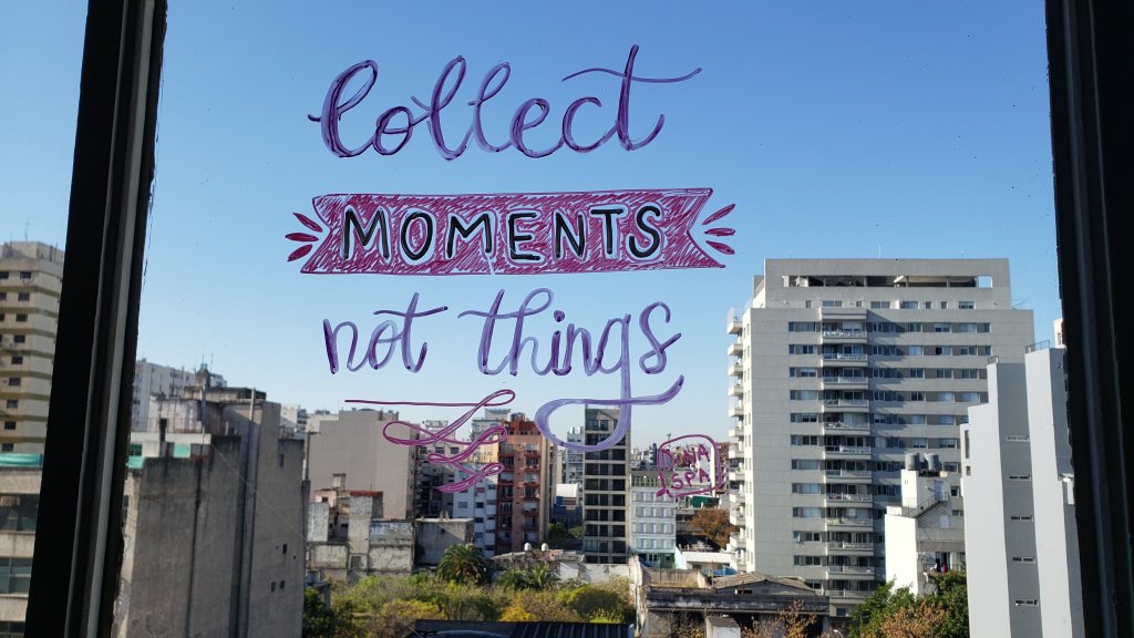 Colecciona momentos, no cosas.✨ Me encantó dibujar esta frase en mi vidrio porque me conecta con el ser, las experiencias, el compartir.
