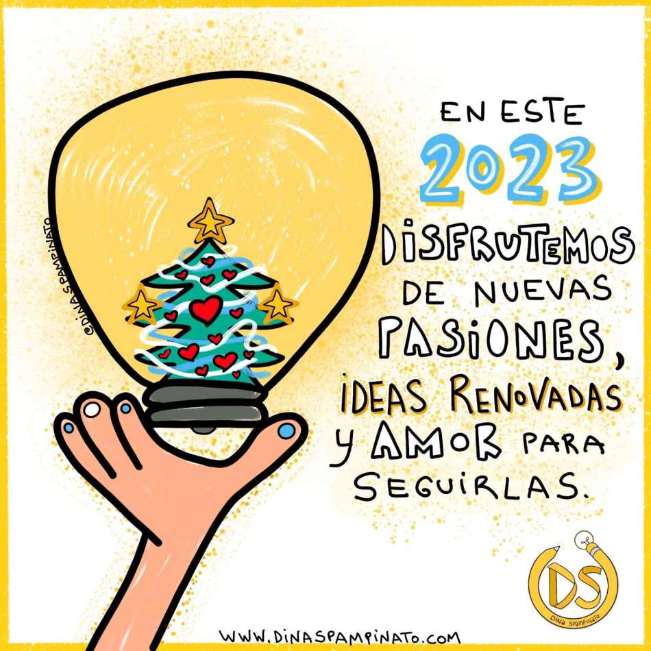 Copy de la tarjeta: En este 2023 disfrutemos de nuevas PASIONES, IDEAS renovadas y AMOR para seguirlas!