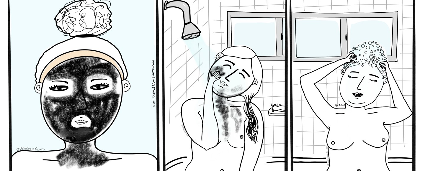 Dibujé estas viñetas, y mientras las hacía me di cuenta que tengo muchos productos y cremas (podrían aparecer más, pero acapararían todos los cuadros!), ¿los uso?, ¿los aplico?, ¿me doy ese tiempo?