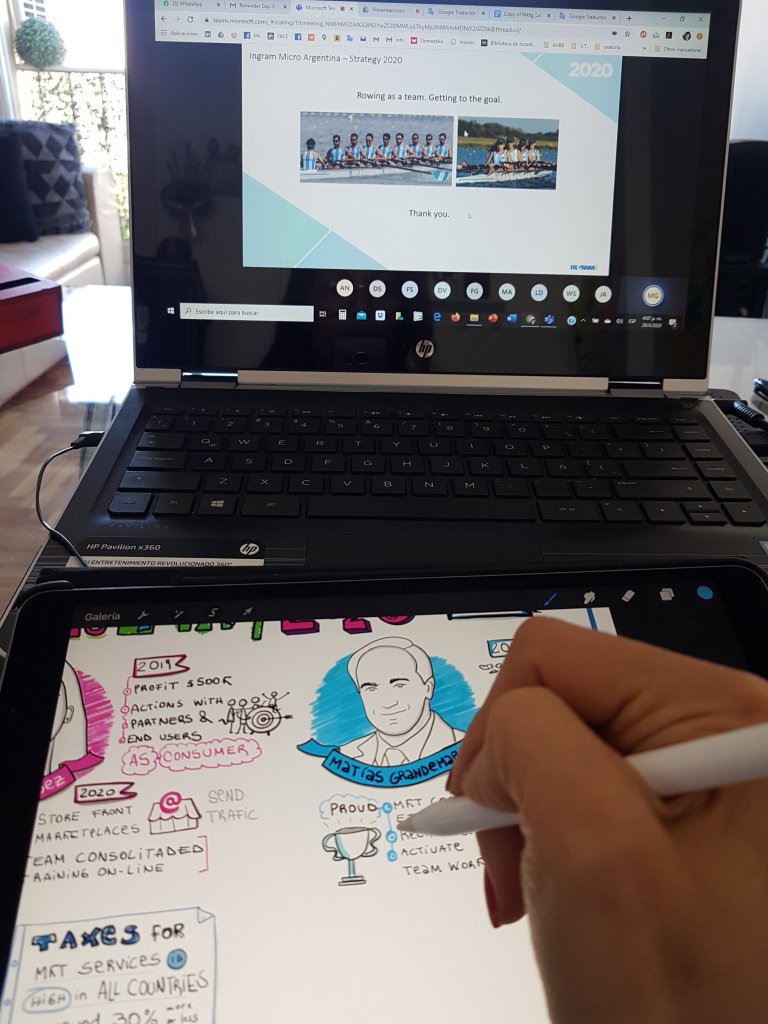 Grabamos en vivo en tus charlas, eventos o workhops todo lo que sucede con imágenes dibujadas y texto clave. Excelente herramienta para lograr mayor recordación de los asistentes e impacto en redes sociales.