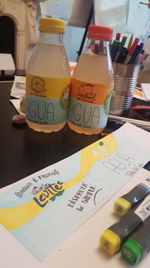 DANONE. LEVITÉ. Desing Thinking nuevos productos. Facilitación Gráfica en papel de distintos formatos. Acompañamos a varios equipos de todo el mundo de Aguas Danone, en un proceso de Desing Thinking. Validado primero con equipos ejecutivos y luego por usuarios target y público objetivo de los productos. CLAVE. Fueron 3 días consecutivos de trabajo. Las ideas de etiquetas y comunicación visual fueron cambiando y evolucionando con las devoluciones y puntos de vista de consumidores y equipos especialistas.