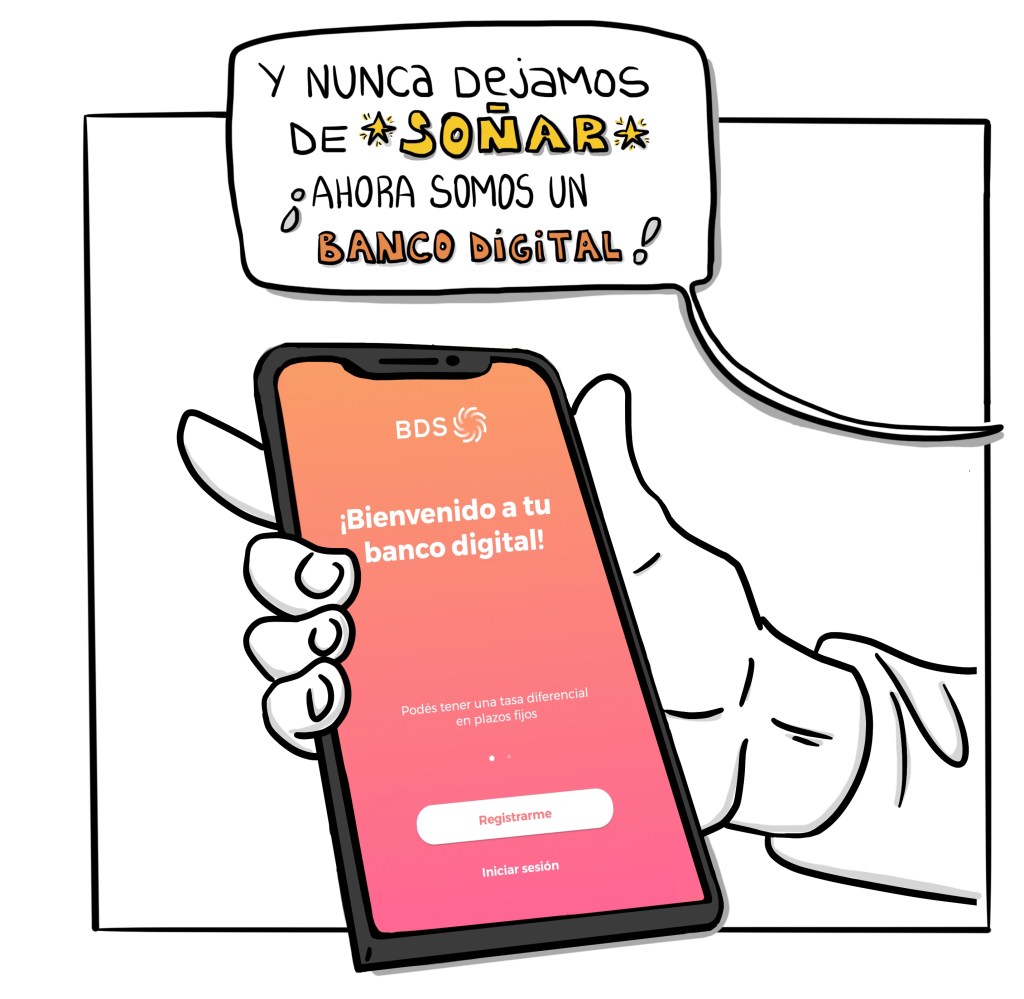 BANCO DEL SOL. Historia de la creación del BDS. Ilustraciones en formato cómic para distribución interna. A partir de un guión, se hizo el Storyboard en borrador. Luego se realizó la historia de cómo nació, creció y se transformó el Banco del Sol. También se hicieron las caricaturas de los socios fundadores y del equipo, que son los protagonistas de la historia.