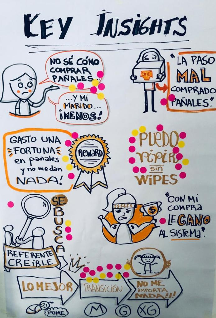 KIMBERLY CLARK. Huggie’s. Design Thinking. Registro Visual Digital + Faciltiación Gráfica en papel. Reunión sobre puesta al día de estudio de mercado.