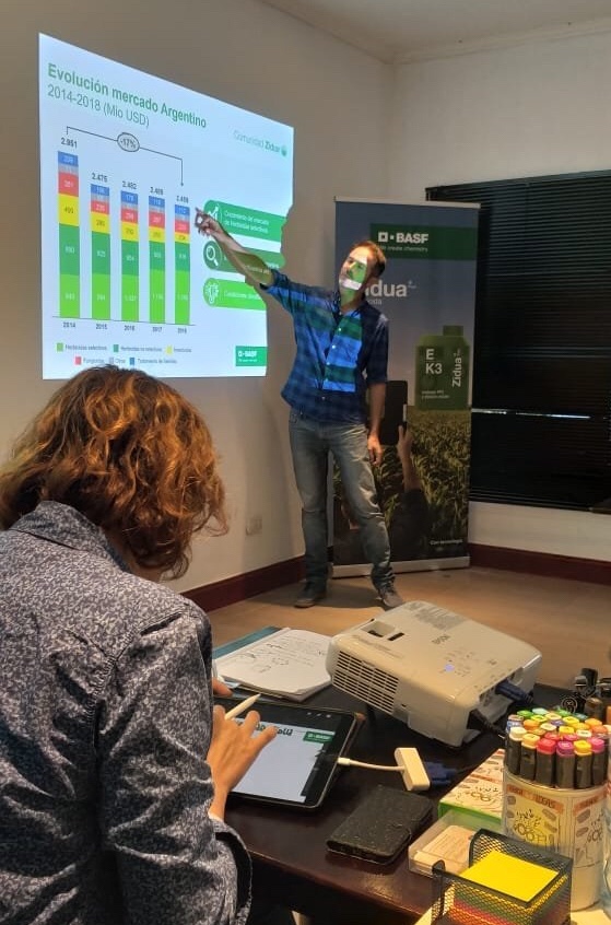 BASF. Comunidad Zidua. Facilitación Gráfica de equipo realizada en Mendoza entre ingenieros para repasar cómo fue el 2019 con respecto al uso del producto Zidua en la comunidad de productores agrícolas. Y pensar cómo seguir avanzando en el 2020.