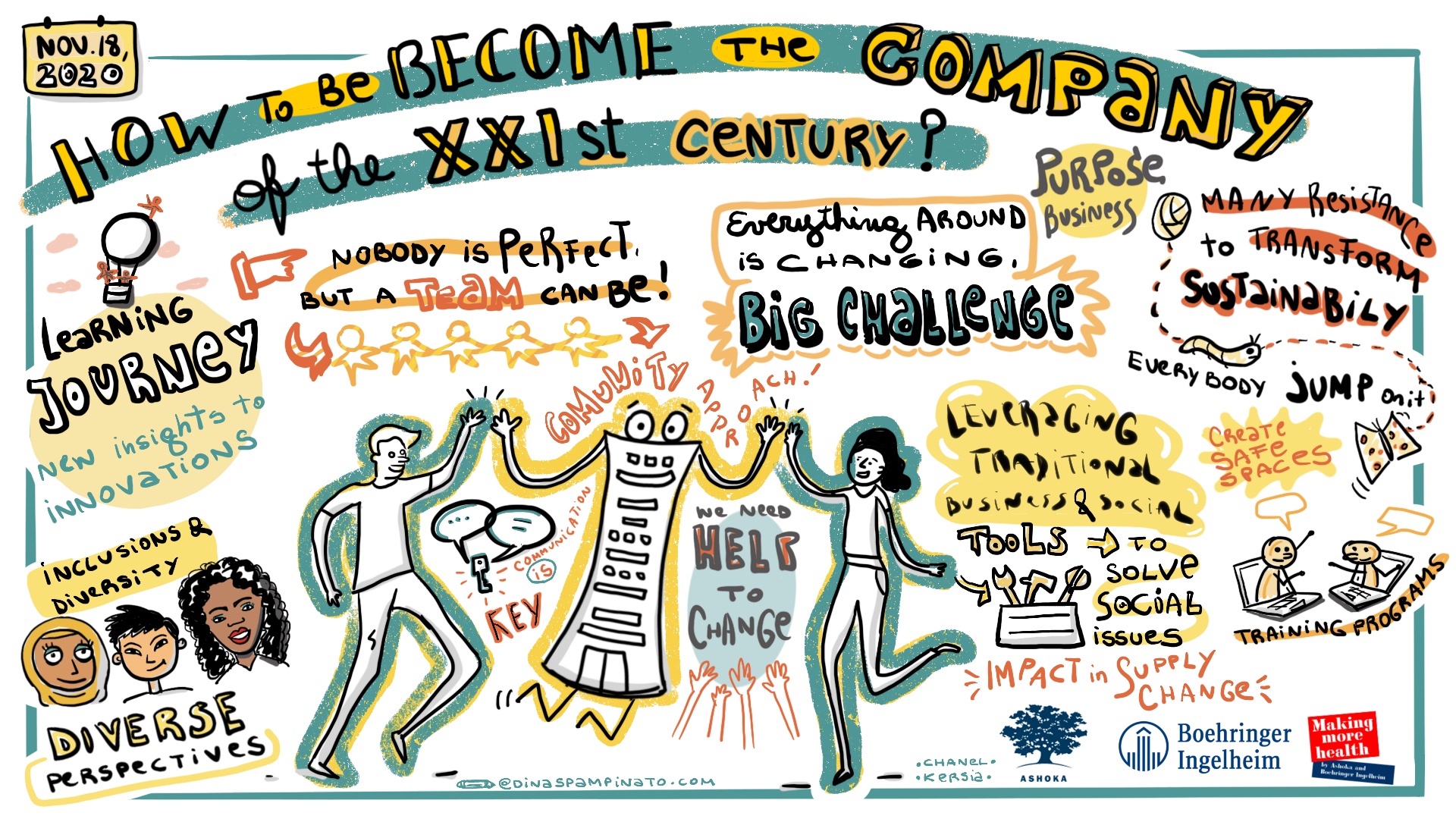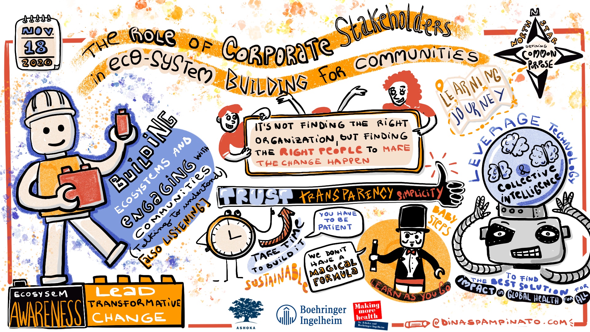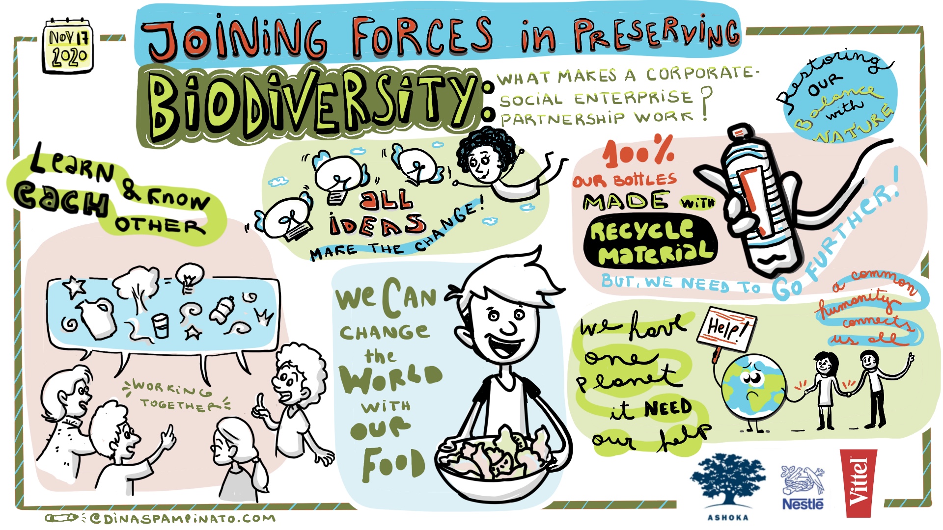 Nestlé, Purina, Vittel and Boehringer Ingelheim. Ashoka Global Submmit 2020. Graphic Recording on line in live for 5 days.