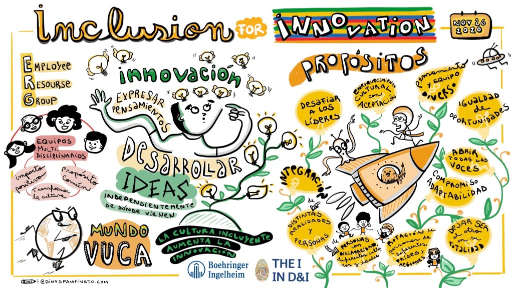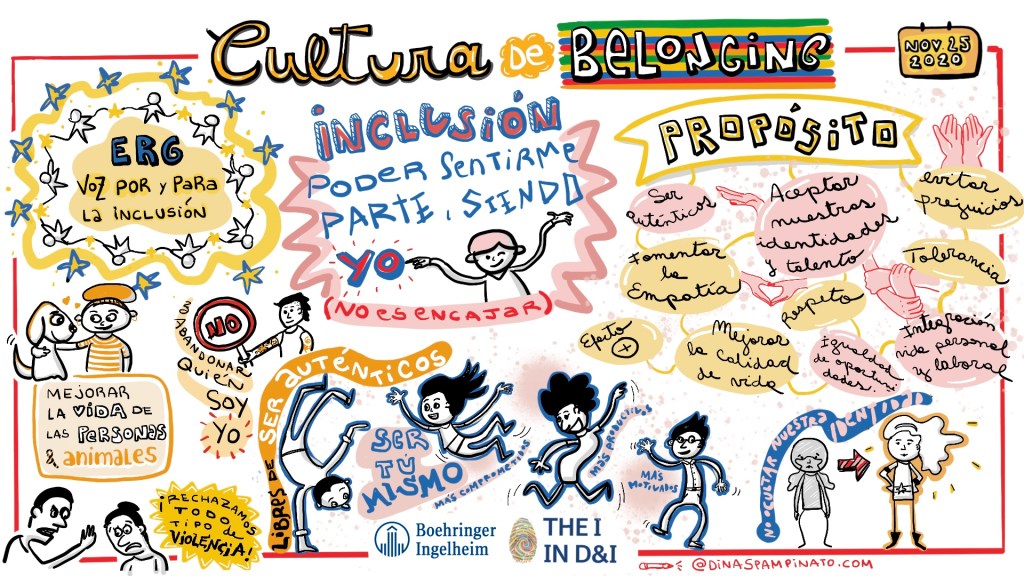 Laboratorio Boehringer Ingelheim. Impacto Social, Cultura de Belonging e Inclusion for Innovation. Facilitación Gráfica en vivo durante 3 días.