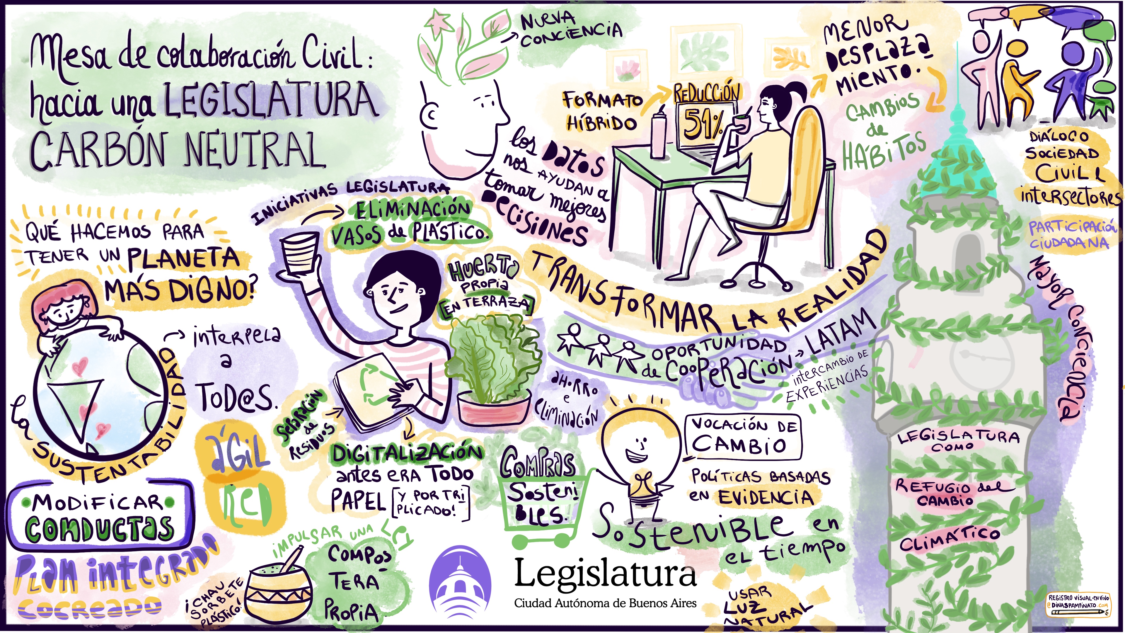 LEGISLATURA DE LA CIUDAD DE BUENOS AIRES. Carbono neutral. Facilitación Gráfica en vivo.