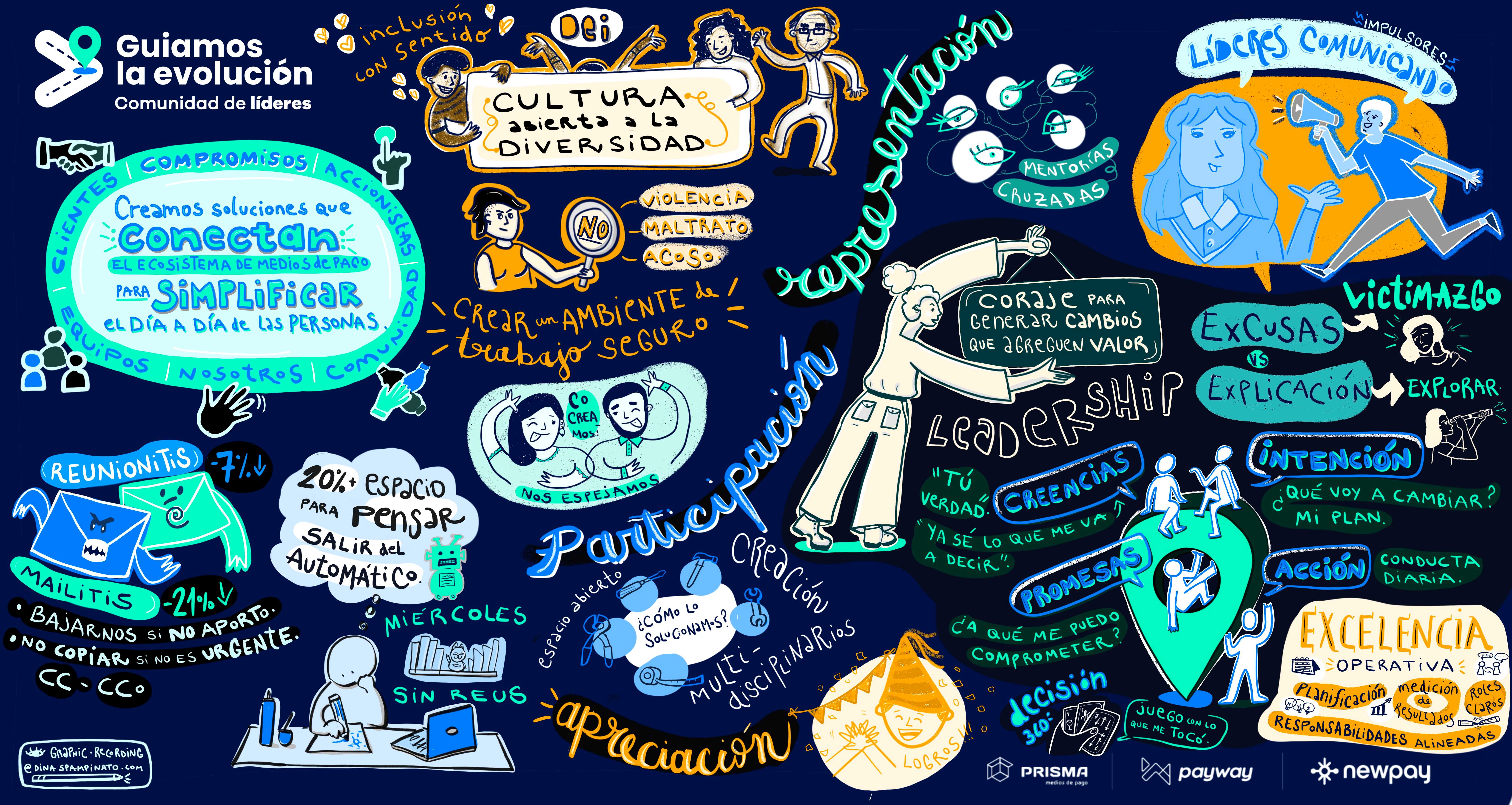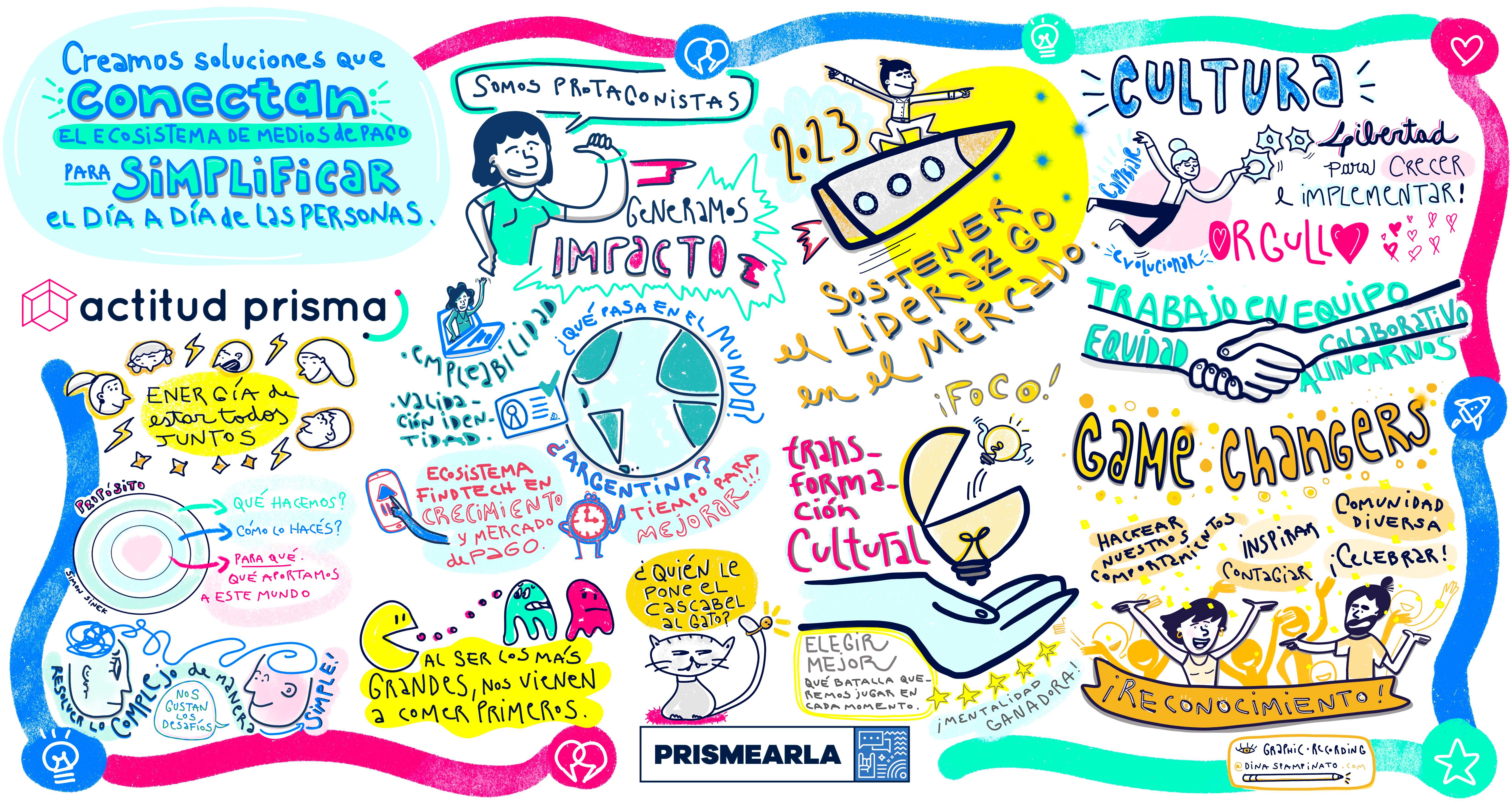 PRISMA, MEDIOS DE PAGO. Registro visual en vivo. Luego el cliente imprimió el mural del trabajo en tamaño gigante para colocar en sus oficinas.