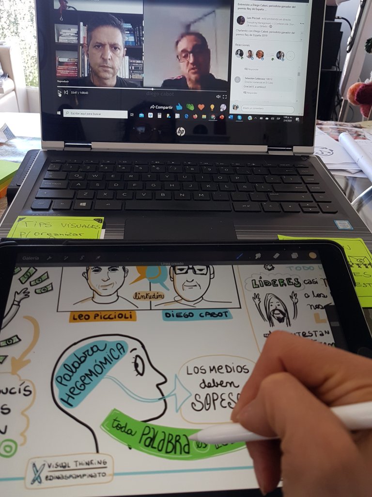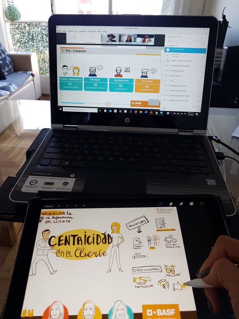 El Registro Visual te va a servir para captar la atención del público presente y documentar en vivo las palabras de los expositores. Obtendrás mayor recordación e impacto visual, además de repercusión en redes sociales, ya que siempre la gente se acerca al final a tomar una foto del resumen visual. Lo podemos hacer en formato digital, de manera presencial o remota, dibujado en una tablet y proyectando el resultado.