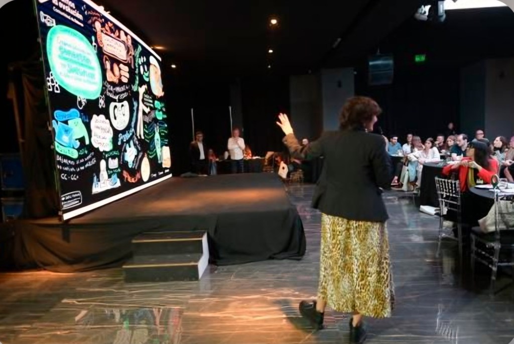 En el Registro Visual, las palabras habladas se traducen en dibujos y textos claves. Esto se construye en tiempo real, en formato digital. Al final queda una potente síntesis visual de la jornada.