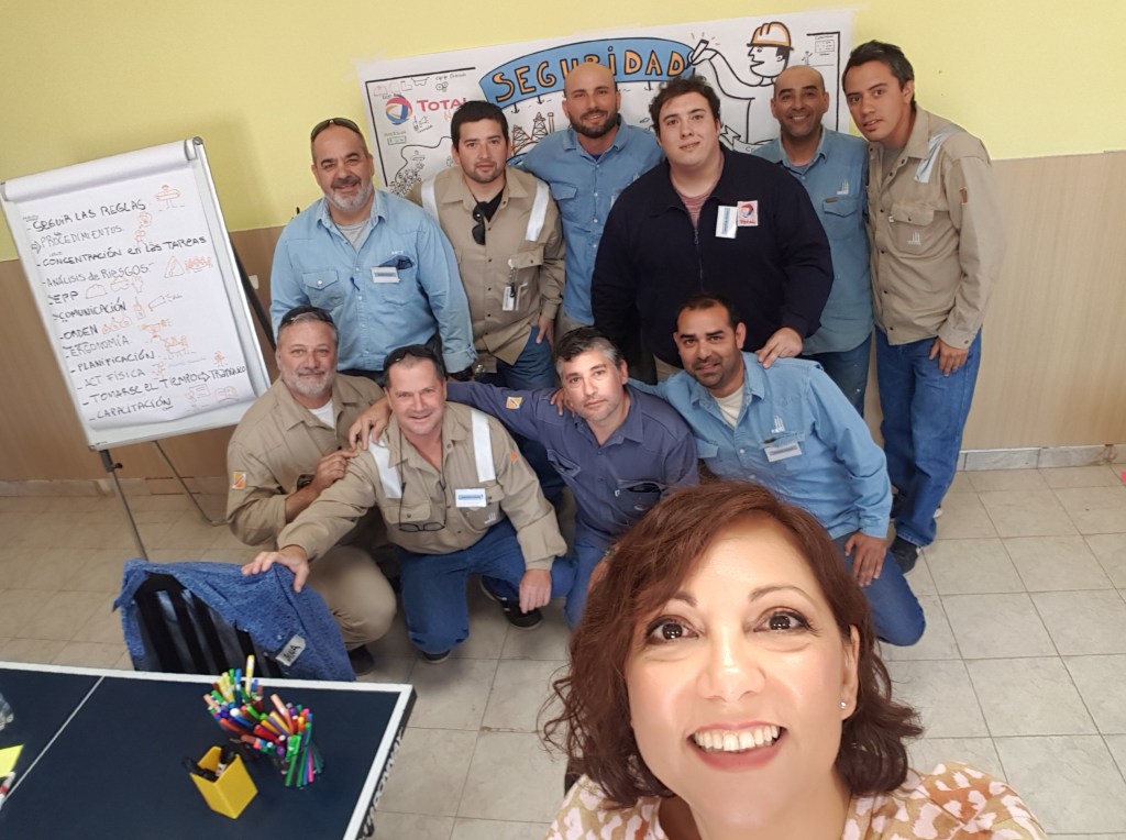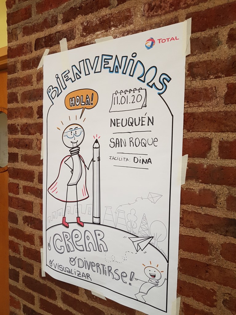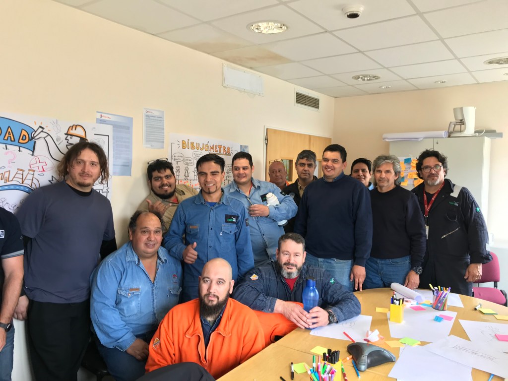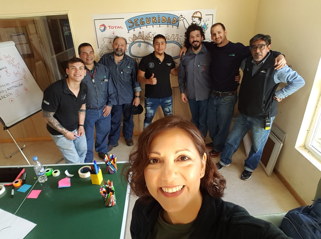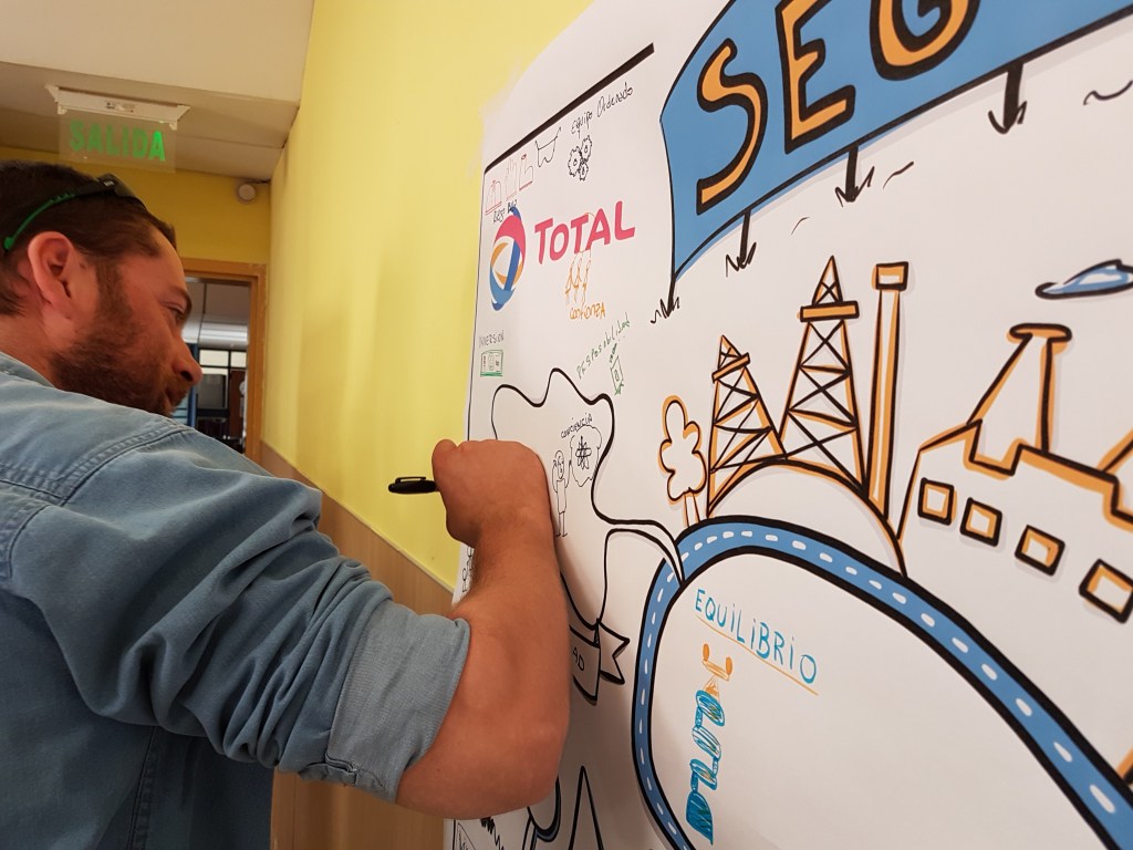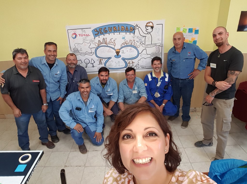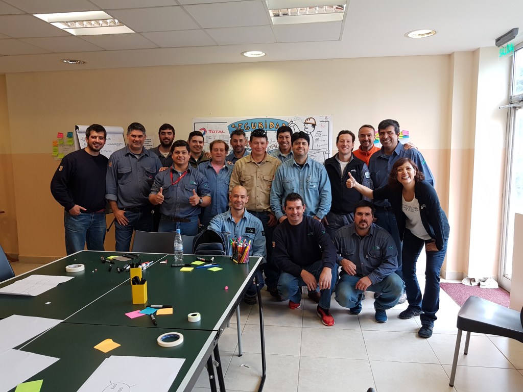 En el marco de la Semana de la Seguridad, se invitó a los colaboradores de Total ha hacer una intervención creativa con ideas de la Cultura en seguridad. Se los instó a expresarse libremente, dejar de lado lo escrito y pensar en qué cosas ellos hacen para cuidarse individualmente y en equipo. Todas las ideas que salieron individualmente, luego fueron chequeadas entre todos de manera colaborativa hasta llevarlas a un lienzo con dibujos y palabras claves.